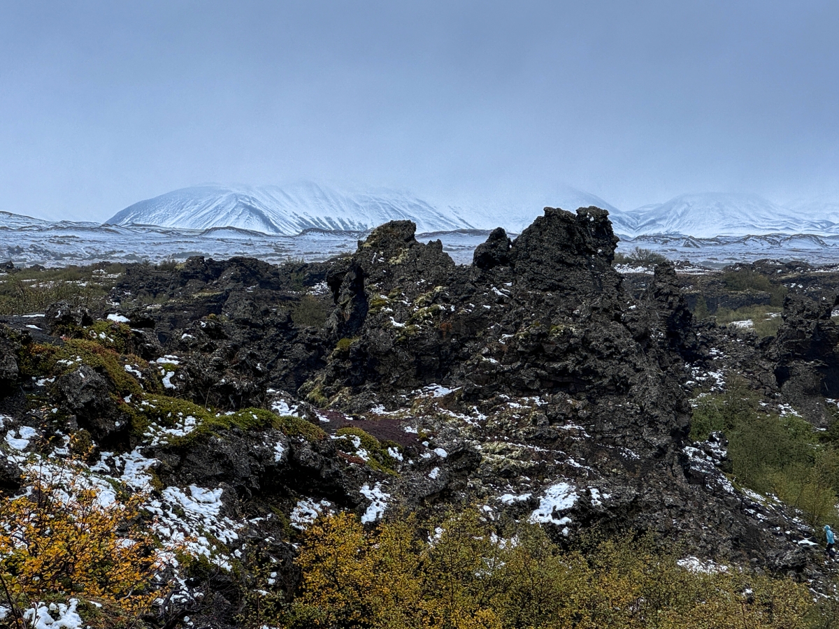 I wasn’t alone most of the time. If I turned and looked the other way, they were trudging through the sleet or taking photos of each other. Or as we drove down the highway, the church appeared against the cliffs, the horse looked up from grazing, a bird flew by, I looked toward the horizon.